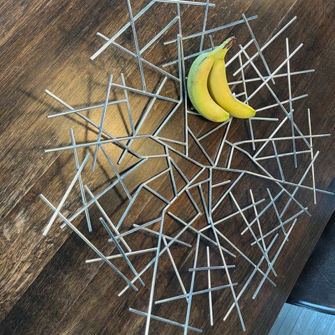 Flot rød fruktkurv i lakeret metal fra IKEA, model trådig designet af Ehlén Johansson i 90erne. Kan også vendes på hodet og monteres som lampeskærm.