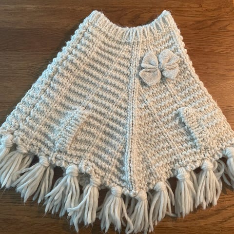Poncho, Poncho og hue, Hjemmestrikket hue og indkøbt poncho