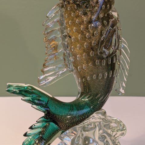 Murano glas, glasfigur, svane figur, italiensk glas, kunstglas, samlerobjekt, vintage glas, pyntegenstand, boligindretning, uranium glas