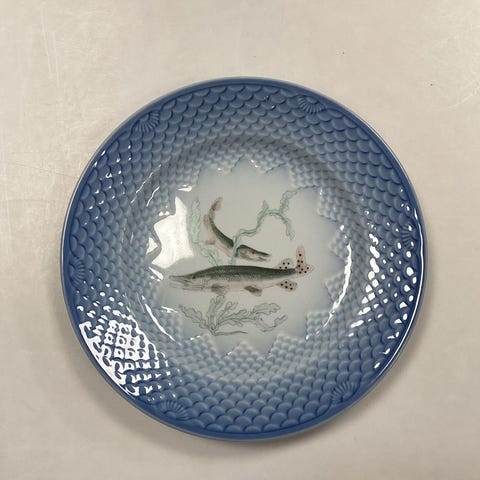 Bing og Grøndahl Blå Tone Fisketallerken Motiv 4 Gedde No. 716 - SKÅRET/SLIDT...
