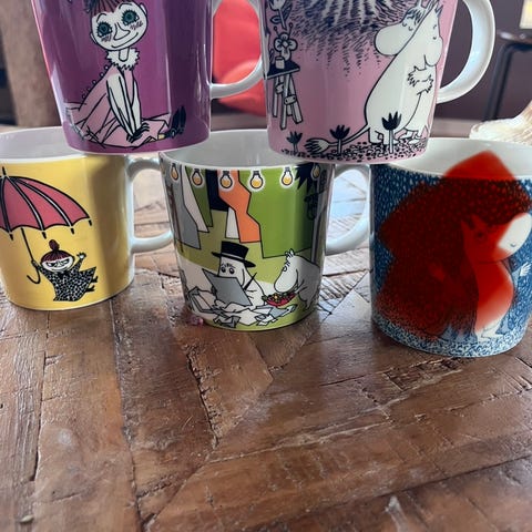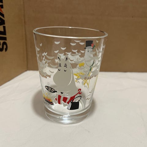 Arabia Mumi glas med farverige illustrationer. Designet til daglig brug og samling.