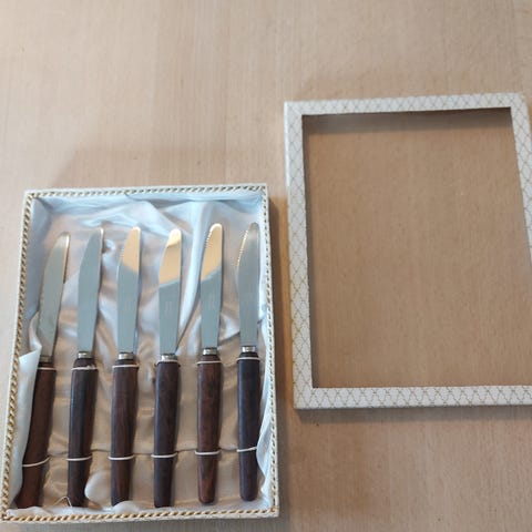 6 stk palisander smørknive / frugtknive i holder fra 60’erne.