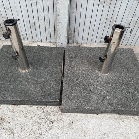 Granite parasolfod med en firkantet base og metal holder, brugt - tung