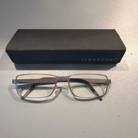 Lindberg herre briller med stel i moderne design. Brillerne leveres med et etui til opbevaring.