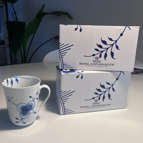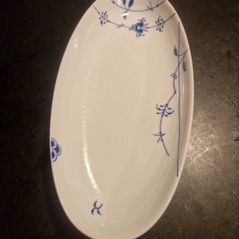 Ubrugt langt fad 28 cm fra Royal Copenhagen, Blue Palmette. Original æske medfølger.