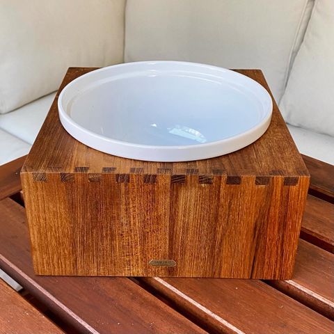 Super flot Skagerak Pullert glasskål med rund teaktræbakke.