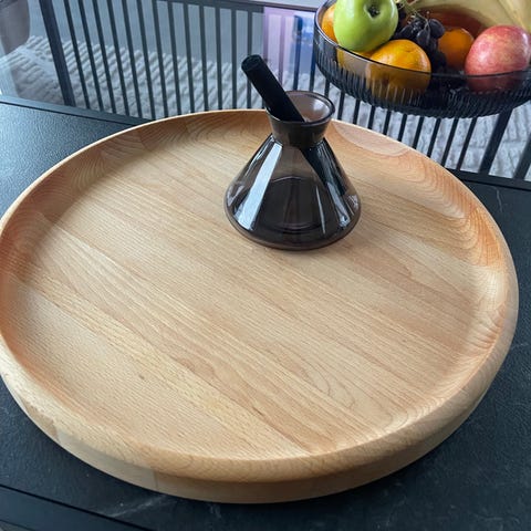 Træbakken, der både kan bruges som bund, top eller alene som en lille bakke, er lavet af teaktræ og er oliebehandlet. Den ligger i forsejlet plastik, har aldrig været åbnet.