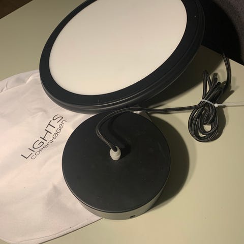 Meget let/svævende. Ledlampe med indbygget dæmper. Købt i coop.
