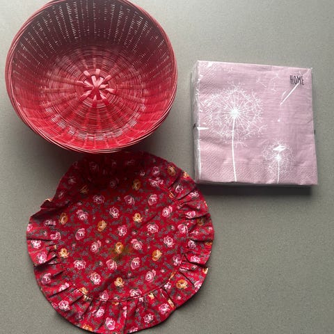 Ubrugt brødkurv i stof i rød og hvid ternet stof med bindebånd