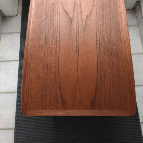 Lille asymmetrisk bord i teaktræ med følgende mål.