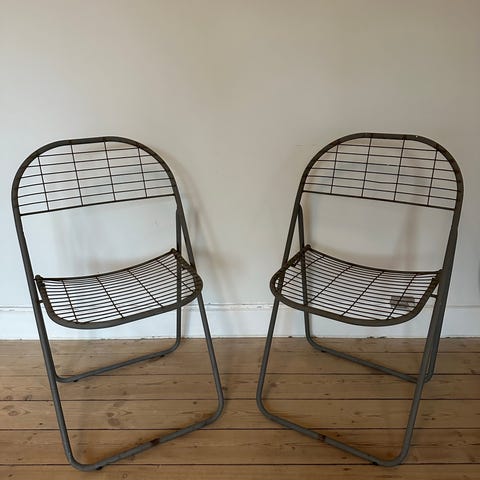 En slags liggestole, dvs. passer ikke til et spisebord. Prisen er for begge to.