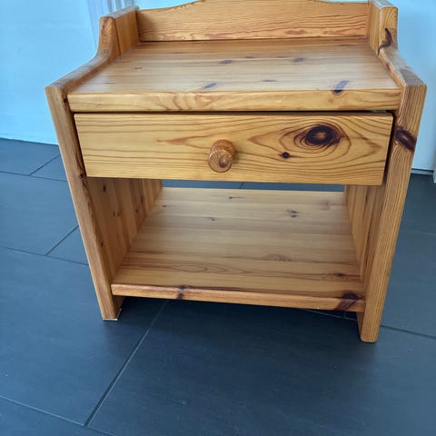 Smukkeste sengeborde, købt af dansk arkitekt familie hvor faren har lavet dem til sine børn . Vi er meget ærgerlige over ikke at have plads, og håber at sælge til nogen som sætter pris på historien og det gode håndværk.