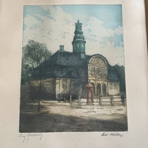 Radering, Peter Holm, Fra Den Gamle By i Århus.
