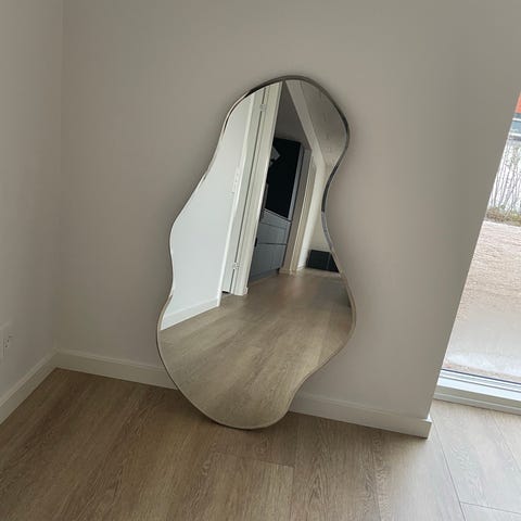 2 stk. Ferm Living Bolina spejl med kobberfinish, måler 45x32 cm. Spejlene har en rektangulær form med en ramme i kobberfarve. Velegnet til ophængning i hjemmet som dekorativt element og til funktionel brug.