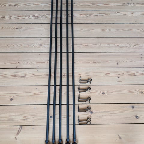 80kr/stk, Gardinstænger 5 stk til 120cm 1 stk til 250cm incl beslag.
