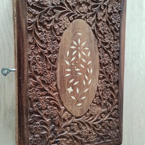 Sy-/smykkeskrin i rødmalet træ. Se mål på billeder