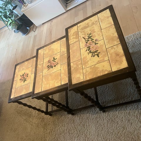 Sælger dette fine og robuste gasbord med hvidt klinkebelagt bordplade og sort metalstel. Bordet står stabilt og har en praktisk hylde under bordpladen, som giver ekstra opbevaringsplads. Perfekt som plantebord, sidebord eller til entréen.