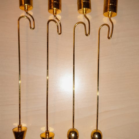 To gyldne lysholdere til juletræ.
