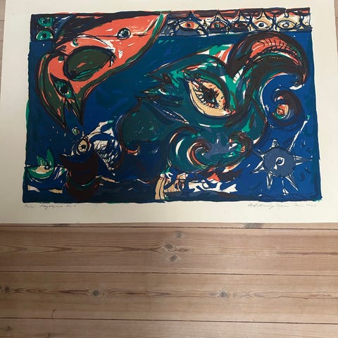 Carl-Henning Pedersen (1913-2007), litografi i farver, fra H.C. Andersen serien, signeret, nummereret og dateret 1985, arkstørrelse 76x56, super fin stand