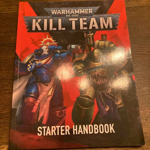 Warhammer Kill Team Core Manual, en bog med regler og information til Kill Team spillet. Indeholder detaljer om spillets mekanikker, enheder og strategier.