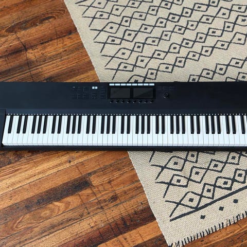 Roland PK-5 MIDI pedal keyboard med otte tangenter og tilhørende AC-adapter. Designet til at blive brugt som et MIDI-kontrollerinstrument med pedalfunktioner, typisk til musikproduktion og liveoptræden.
