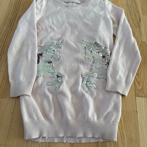 Fin mørkegrøn strik fra Grunt str. L jr (der står str. 158/164 i mærket). 72% acryl / 25% nylon / 3% spandex