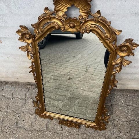 Gammelt fint spejl. Ingen ridser eller rener i træet.