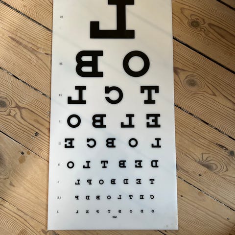 Klassisk gammel synstavle. Selve billedet med symboler er løs mellem glasset og kan sættes i anden ramme. Måler 39 x 62,5 cm