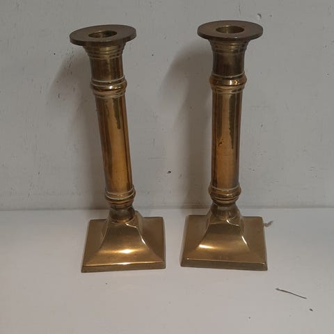 3 elegante svenske Scandia messing lysestager med træ. De to største lysestager er 29 cm og den mindste er 19,5 cm. De er i fin stand. 350 kr. for alle 3 lysestager. De er stemplet i bunden med Scandia, mässing og krone.