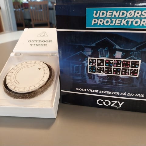 Novel udendørs julelys projektor med 4 forskellige lysmønstre og timerfunktion. Enheden er designet til udendørs brug og leveres med en jordspyd til nem placering i haven eller på græsplænen. Projektoren skaber dekorative lysmønstre til julebelysning.