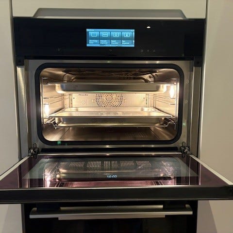 Miele kombi dampovn med rustfrit stål finish. Velegnet til dampbaseret madlavning.
