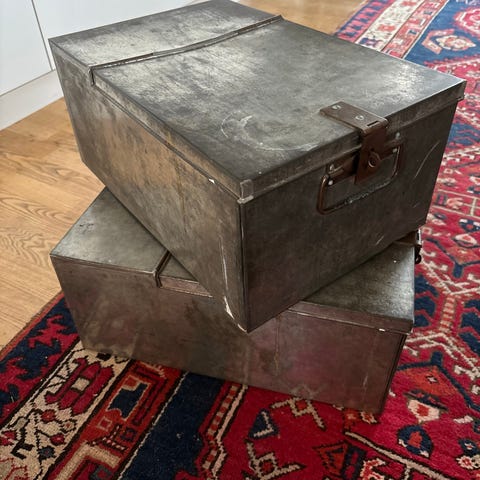 Super flotte, gamle kasser / kassetter til bankboks i stål. 50x30x7 cm. 12 stk. haves, rabat ved køb af flere stk.