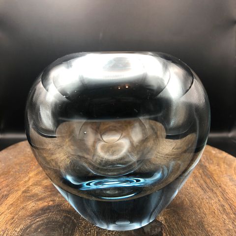 Holmegaard Laguna Vase i klart glas med blå kant og bund. Vasen har en karakteristisk bølget og foldet form. Designet af Per Lütken i 1955 og produceret fra 1983 til 2001. Et populært samlerobjekt inden for glaskunst. Højde 17,5 cm. En virkelig fin til fra Per Lütken. Se mine øvrige annoncer for mange spændende ting