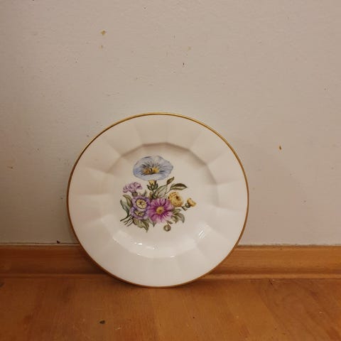 Rigtig fine små kagetallerkener history mix med fem forskellige modeller fra Royal Copenhagen.