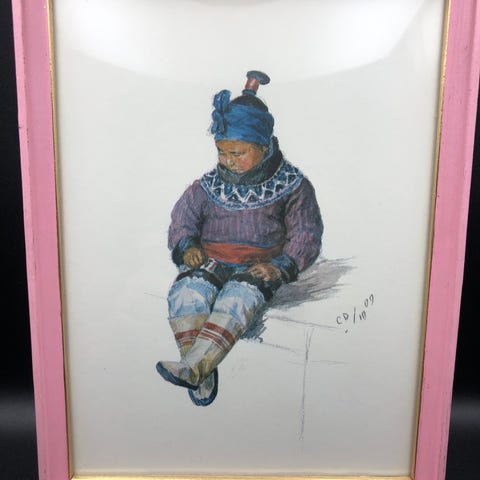 kunst, billede, vægkunst, plakat, ramme, træramme, lyserød ramme, Christine Elisabeth Deichmann, grønlandsk kunst, akvarel, reproduktion, boligindretning, dekoration, vægpynt