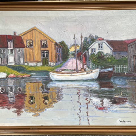 Oliemaleri af Egon Poulsen "Vedbæk Havn"