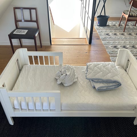 Troll Juniorseng, træ, hvidmalet. Mål ca 140x77. I god stand. Lettere brugsspor på den ene gavl. Madras medfølger.