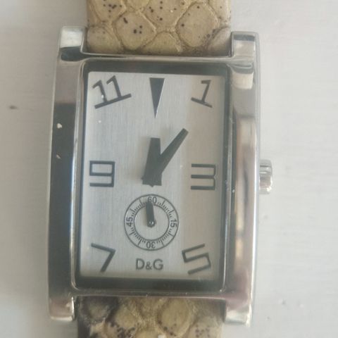 Dameur, D&G, Ægte D&G ur med sort læderrem. Der skal nyt batteri i og remmen er slidt. Sælges til 200 kr. Da det er af ældre dage. Sendes ikke - kan afhentes på min adresse