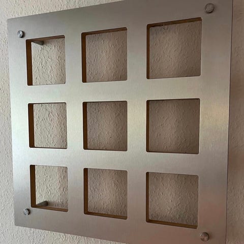 Reolerne hænges på det med følgende støbejern, hul til skruer. (Skruer følger ikke med).