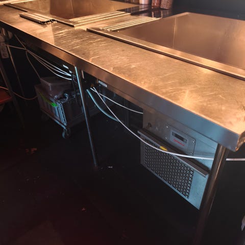 Stort og rummeligt GRAM kølebord med 6 skuffer, perfekt til restaurant, café, catering og storkøkken.