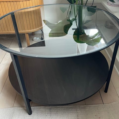 Bordet er brugt, men i pæn stand. Der er et par små ridser på glasset, men intet der ses tydeligt i brug.