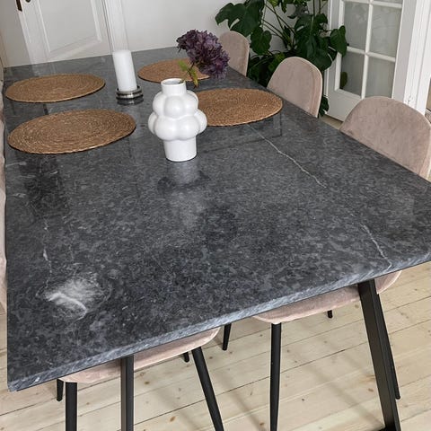 Marmorpladen sidder løst på stålunderstellet, så det kan udskiftes.