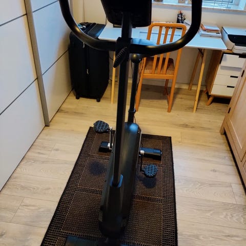 Bfit Mini Motionscykel med digitalt display til træning af ben. Udstyret med fodstropper for sikker placering af fødderne under brug. Indeholder funktioner til at vise hastighed, tid, distance og kalorier. Kompakt design, velegnet til hjemmebrug. Nypris ca 2.400 kr. Se beskrivelse i sidste billeder.
