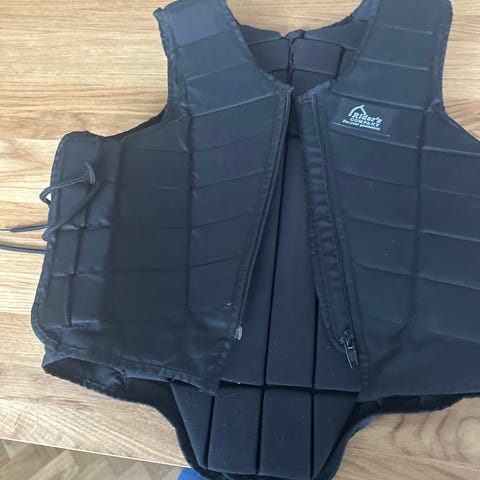 Body Protector i størrelse Adult S, sort farve. Designet til at beskytte overkroppen med polstrede paneler. Materialet er holdbart og egnet til sikkerhedsbrug. Passer til voksne.