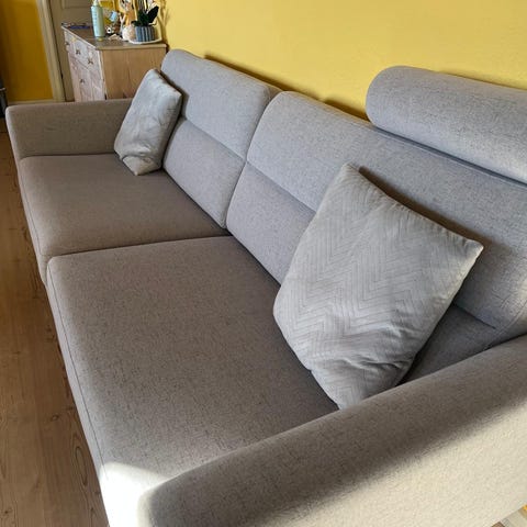 Hej, denne grå sofa sælges, da den ikke passer helt ind i vores stue (sælges for min mor).