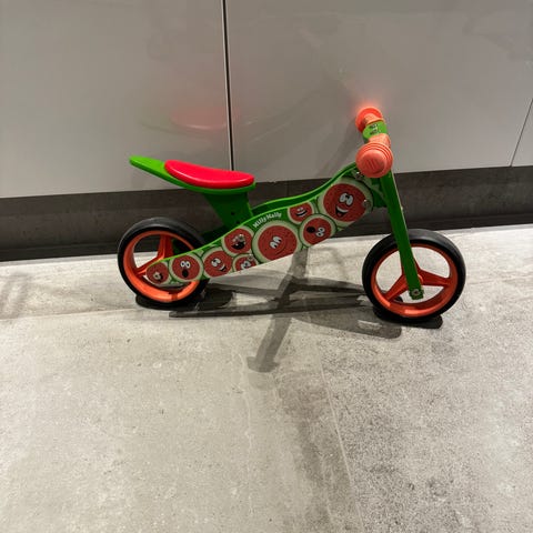 Løbecykel til børn med tre hjul og skubbestang i rosa og hvid