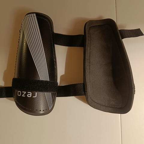 Pro Touch 303 TS skinnebeskyttere i størrelse Large. Beskytterne er sort og hvid og designet til at beskytte skinnebenene under sportsaktiviteter. De har justerbare stropper for en sikker pasform og er egnet til brugere med en højde på 160-180 cm.