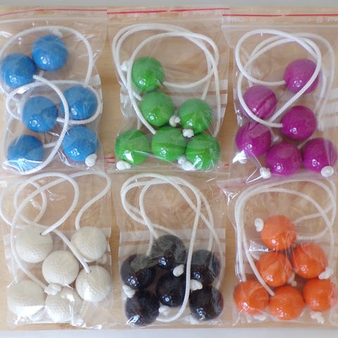 Sælger dette sæt Luksus Stigegolf Kugler i virkelig god kvalitet. Perfekte som ekstra sæt til dit stigegolf-spil eller som erstatning for slidte kugler.