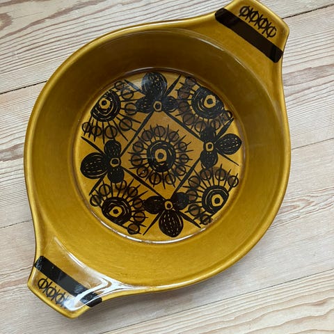 Smørnæb / sovseskål / saucer fra Stavangerflint sera stellet. Ca 17,5 x 14 cm og ca 6,5 cm høj. Sjældent udbudt, fra 70’erne. Sælger ildfast fad fra samme serie.