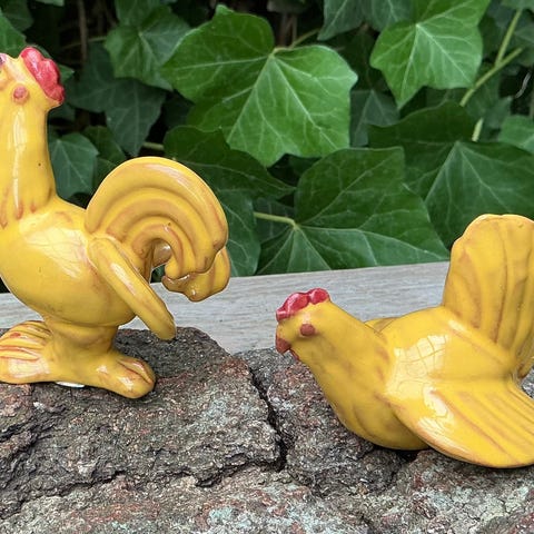 En piv-i-røv høne kaldes også swallerhøne. På sidste billede er der lidt historie om hønen. Den er ca. 12 cm i længden og ca. 7 cm i højden. Hønen er i meget fin stand.